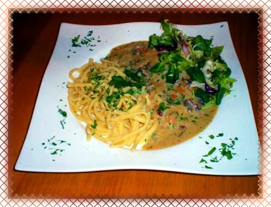 Menominees Welt - Artikel: Champignon-Rahm-Schnitzel mit Spätzle & bunter Blattsalat und Sherry-Walnussdressing